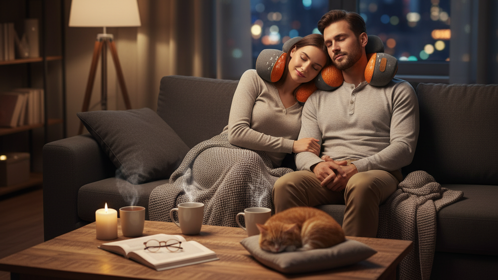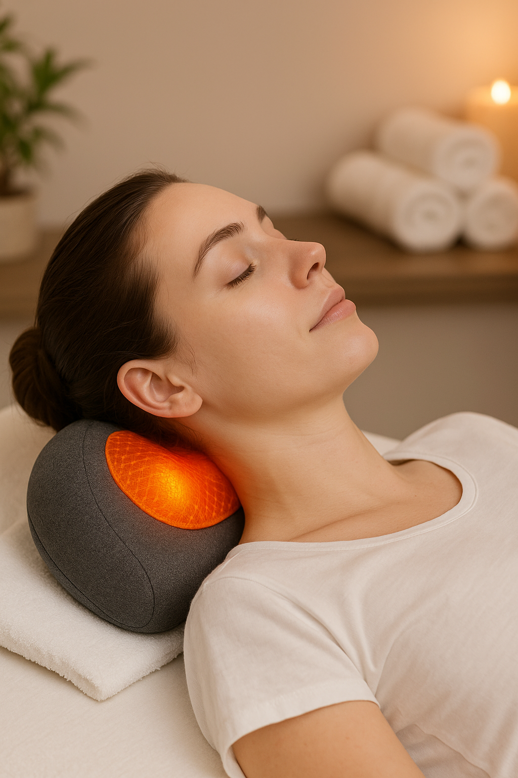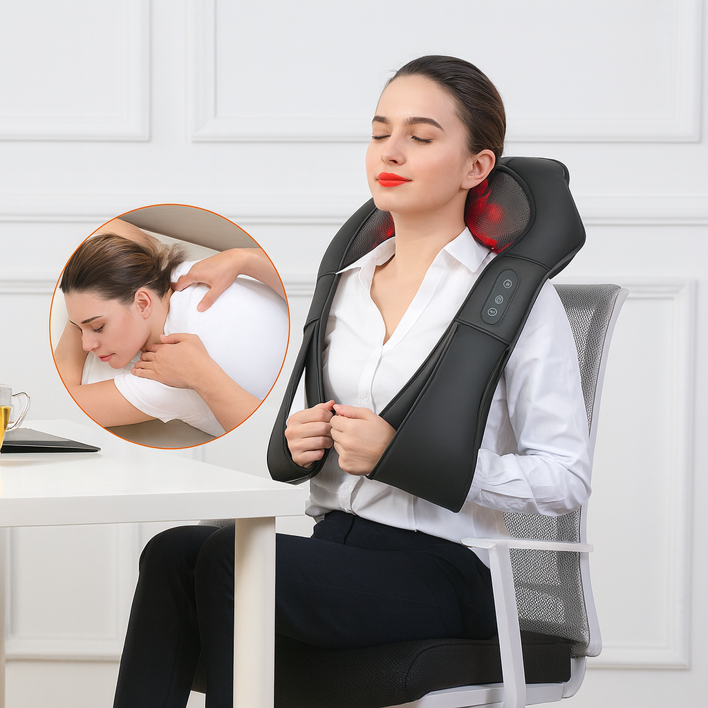 This massager is designed to cradle your neck in a natural, comfortable position that helps release daily tension. The warm compression and soft vibration work together to relax stiff muscles and improve circulation without any effort from you. Its ergonomic shape supports your neck from all sides, making it ideal for rest, recovery, or quick relaxation moments. Whether you use it after work or before sleep, it delivers a soothing experience that feels calm and restorative.